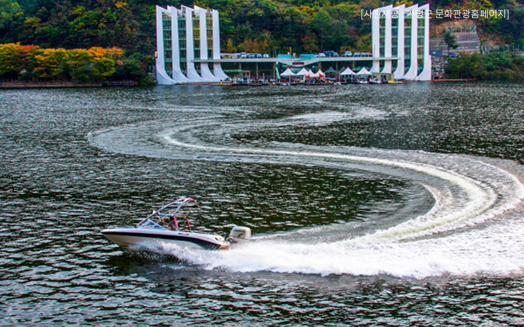 호명산, 화야산이 양쪽에 솟아 있어 주변 경간이 좋고 잉어와 붕어 등 푸우한 어종으로 낚시꾼들의 발길이 끊이지 않으며 호반을 도는 자동차 드라이브 코스가 빼어나 가평 8경 가운데 하나로 꼽힙니다. 여름이면 수상레저를 즐기려는 사람으로 북적거리고 모터보트를 타고 시원한 강바람을 맞으면서 달려보는 것도 색다른 재미가 있는 곳입니다.